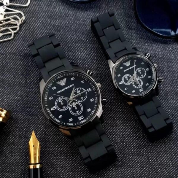 2 Pcs Unisex Stainless Steel Chronograph Couple Watches – Round Multicolor Design